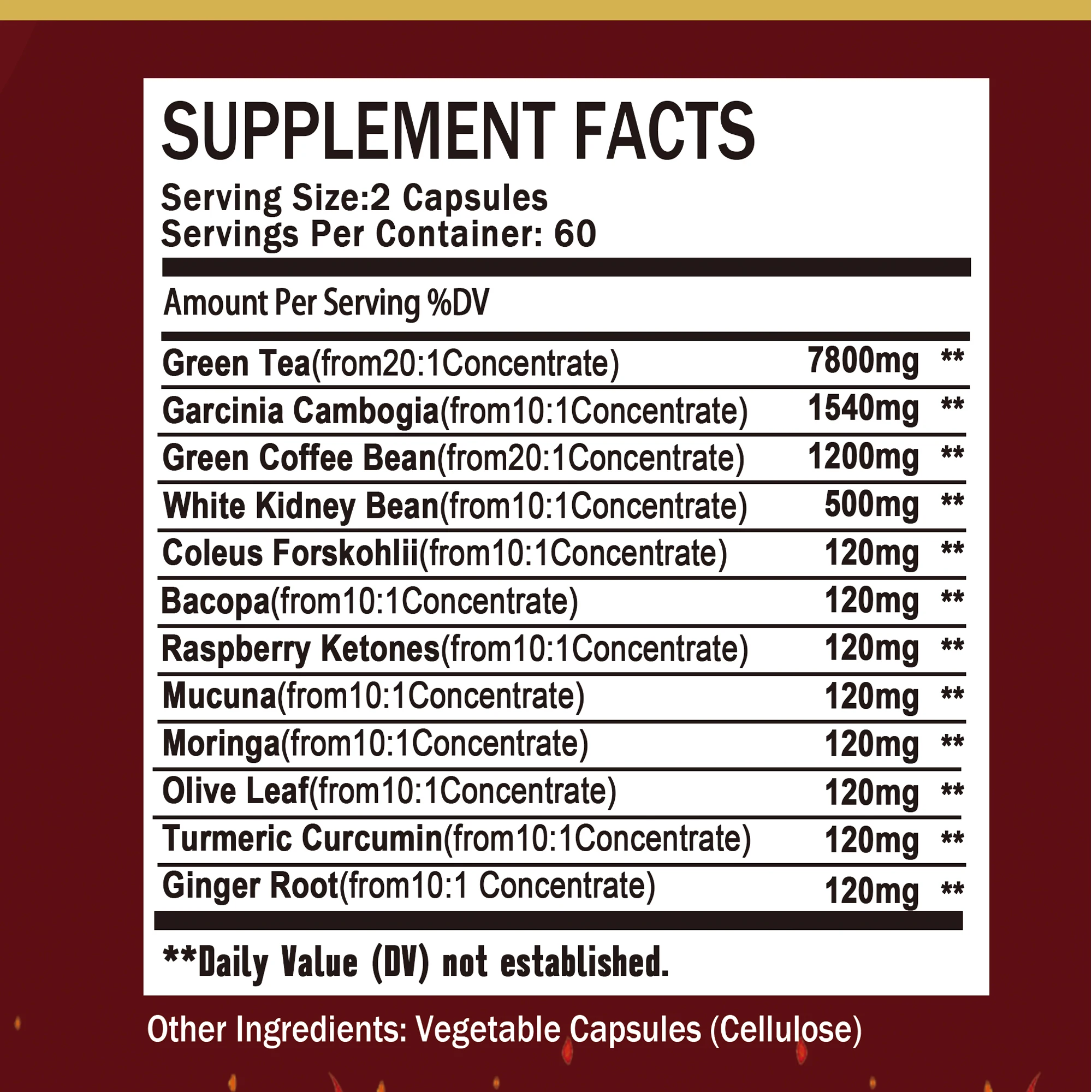 Green tea extract contains powerful compounds like EGCG (Epigallocatechin Gallate), which enhances fat burning and supports healthy metabolism. Combined with other natural ingredients, it promotes thermogenesis—helping you burn fat even at rest!